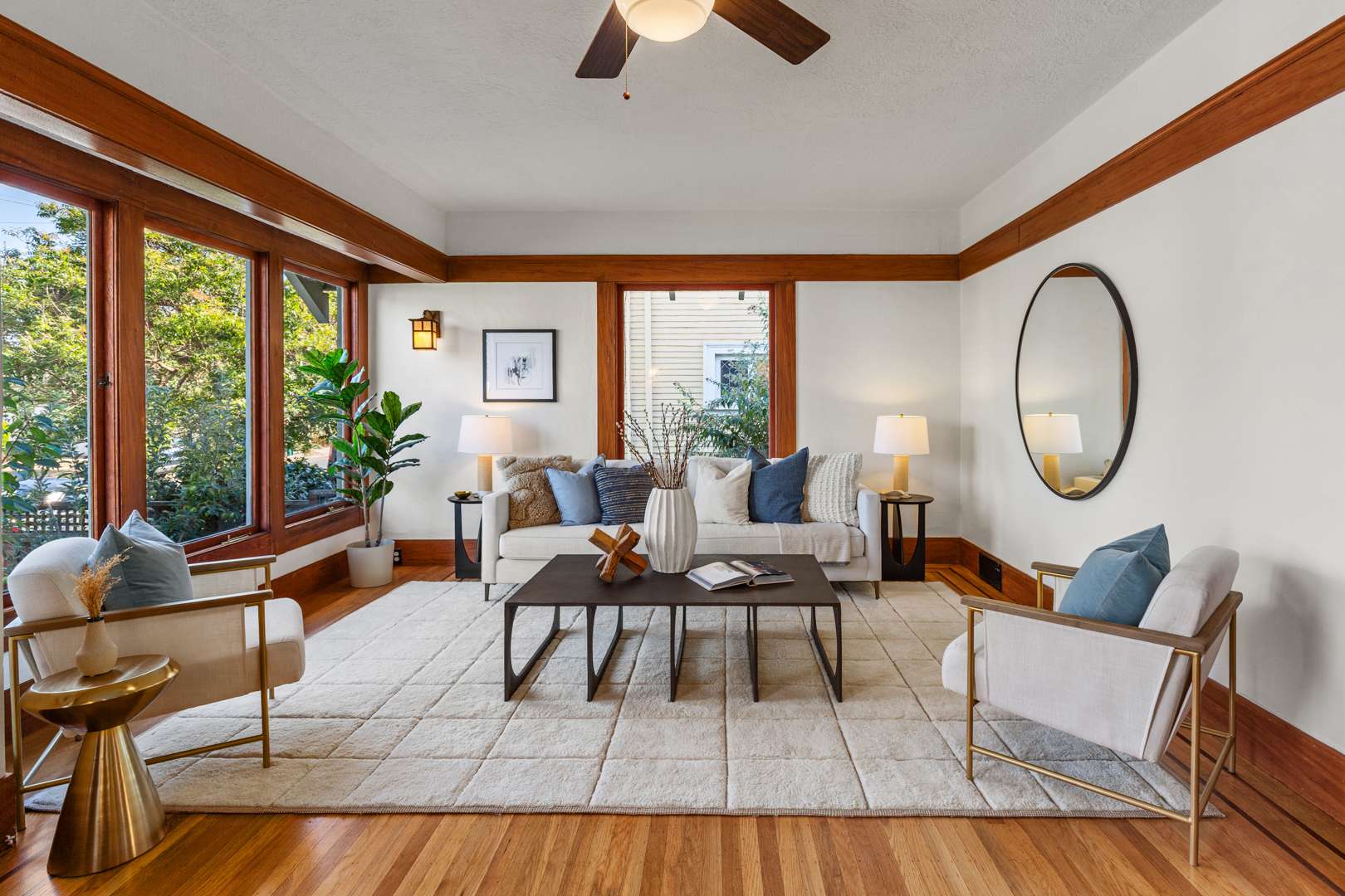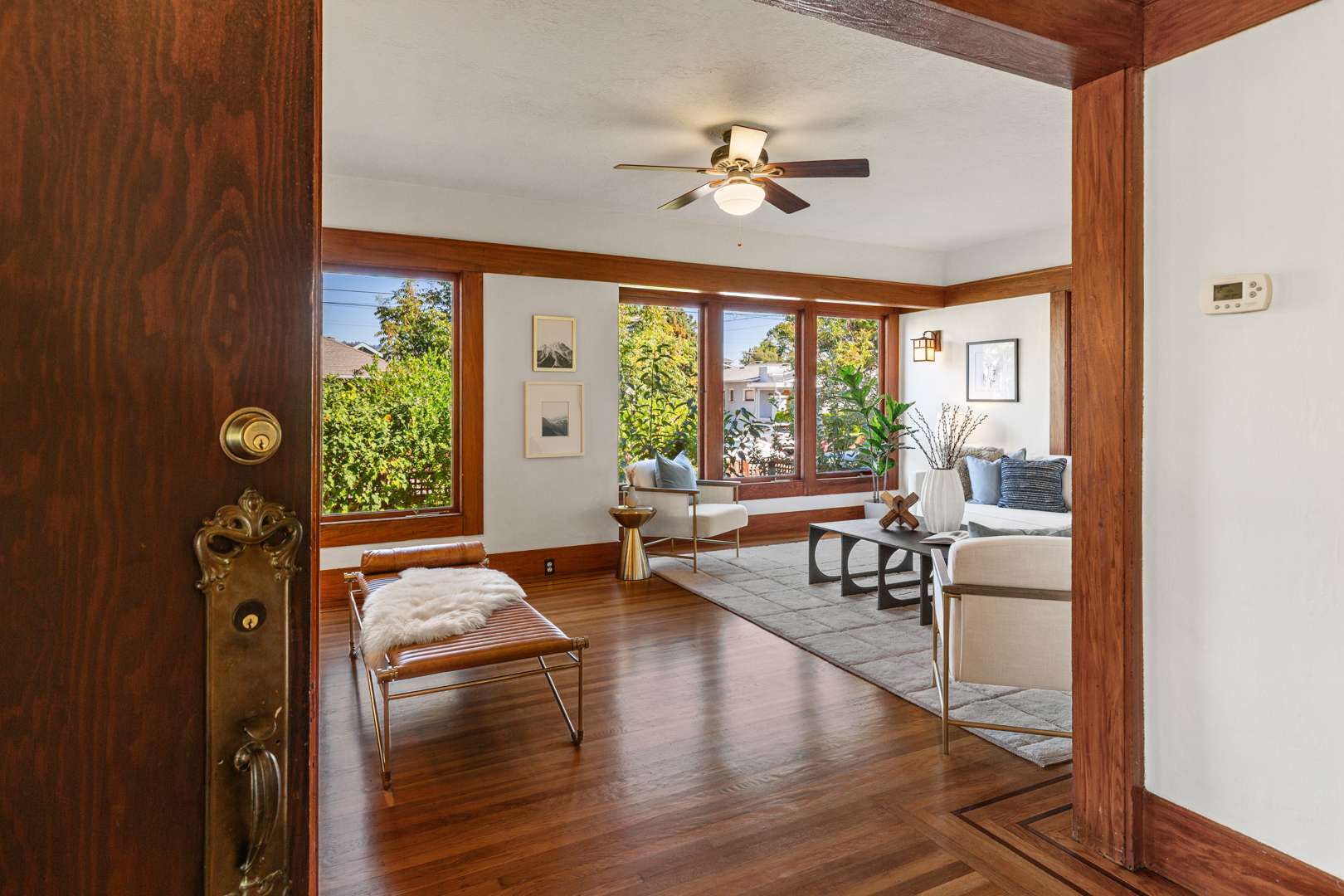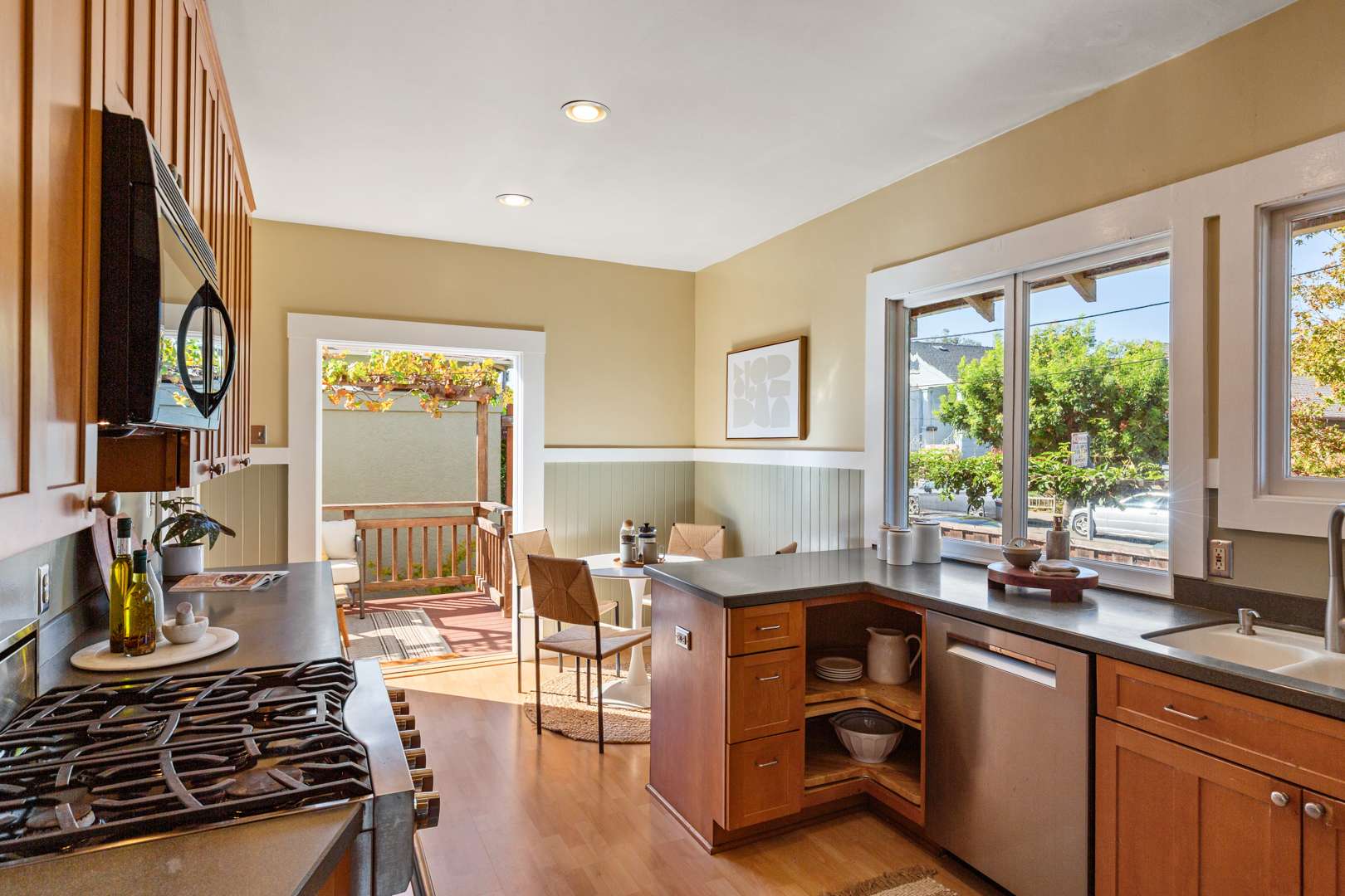 Gorgeous hidden Craftsman oasis in the heart of Temescal, just moments from neighborhood favorites. Through the gate, you’re greeted by greenery and patios that surround the home on all sides—perfect for morning coffee, gardening, or entertaining. An enclosed foyer welcomes you into the home, opening to a light-filled main level with big windows and warm wood detailing throughout. The spacious living spaces flow into each other and feel open and bright, leading naturally into the kitchen, where high-end Viking appliances and two sets of glass doors connect seamlessly to the outdoors. On this level you’ll find two spacious bedrooms and two full bathrooms, thoughtfully updated yet full of Craftsman charm. A finished attic that can be used as a play- or reading room offers a quiet escape. Accessible via its own external entrance, the non-conforming basement offers flexible space for guests, a media room, or home office and has its own full bathroom. Out back, a detached studio with a full bath expands the options even further - ideal for creative work, hosting, or simply an extra private retreat. Surrounded by planter beds, herbs, and a generous parking pad, this home balances tranquility with convenience. Just outside your gate, enjoy nearby Temescal Alley, Whole Foods, Pizzaiolo, Burma Superstar, and easy access to BART and Hwy 24. Privacy and serenity in one of Oakland’s most vibrant neighborhoods.